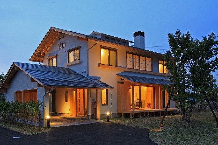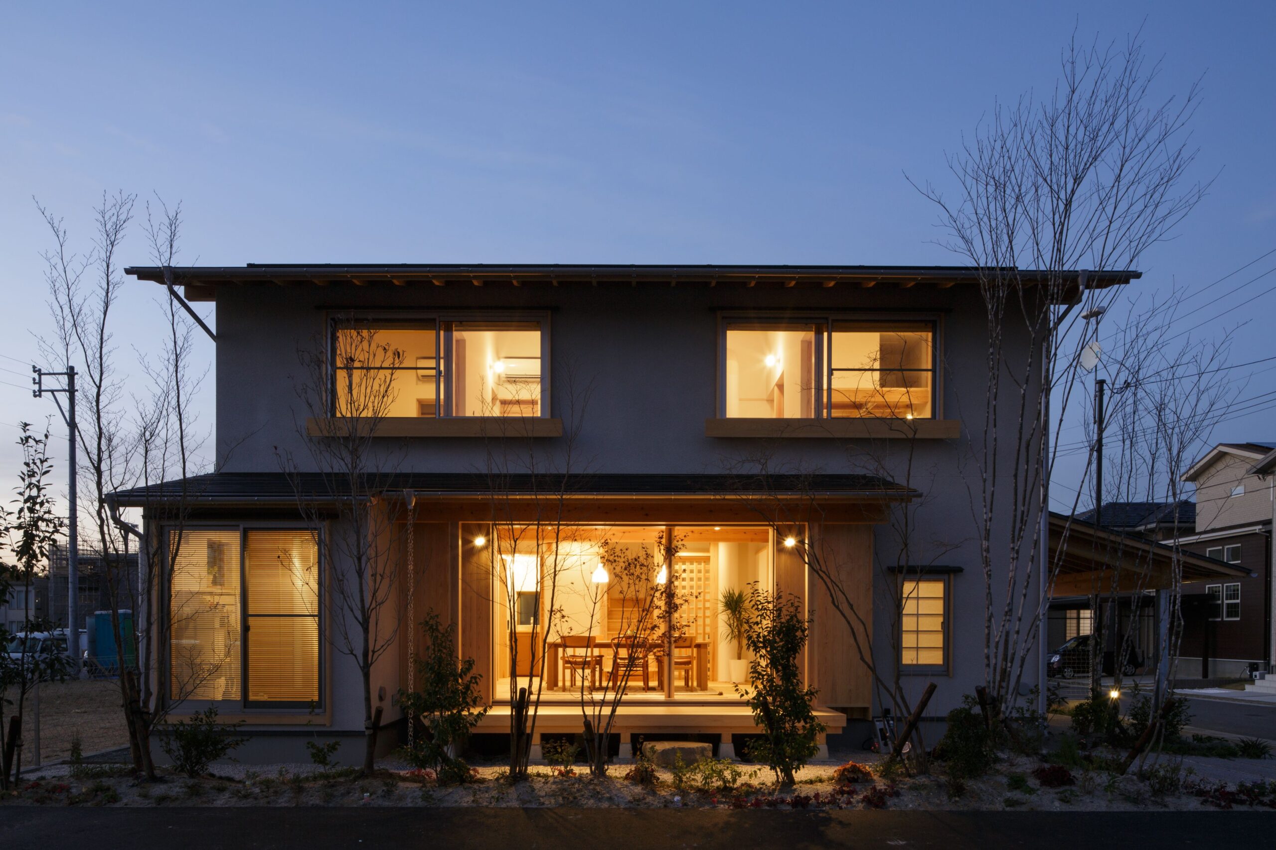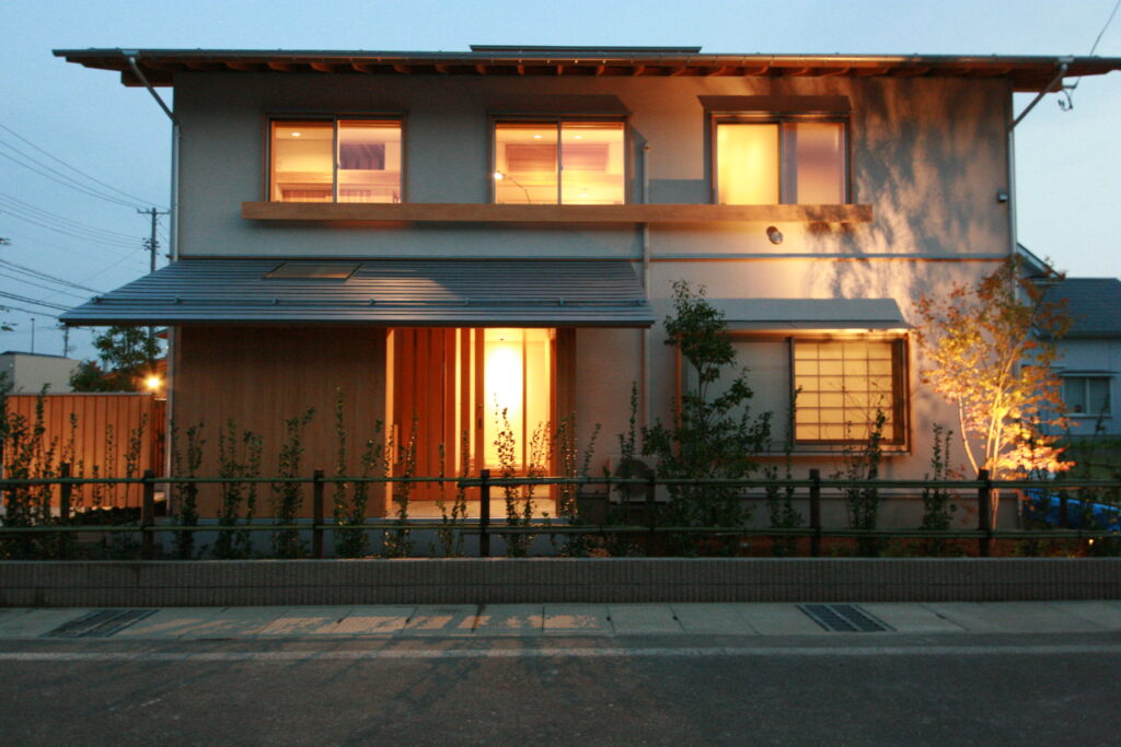 家を外から見たときに暖かい灯りがこぼれ、