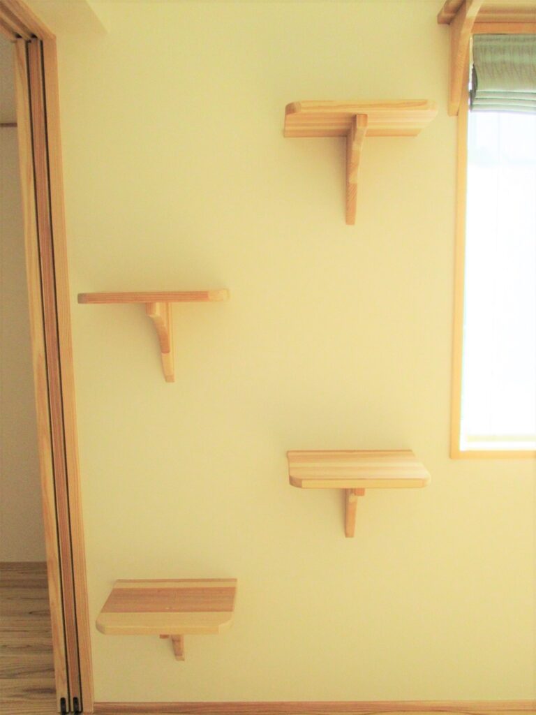 猫と暮らす工夫「壁面棚ステップ」