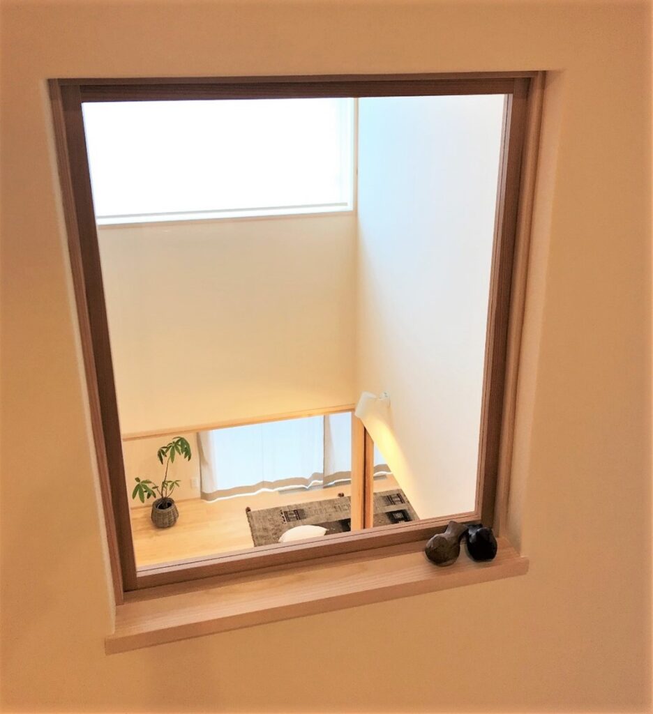 吹抜からリビングを見下ろす場所に窓を設けて、落ちないようにアクリル板を入れておくなどの配慮もするとなお良いですね。