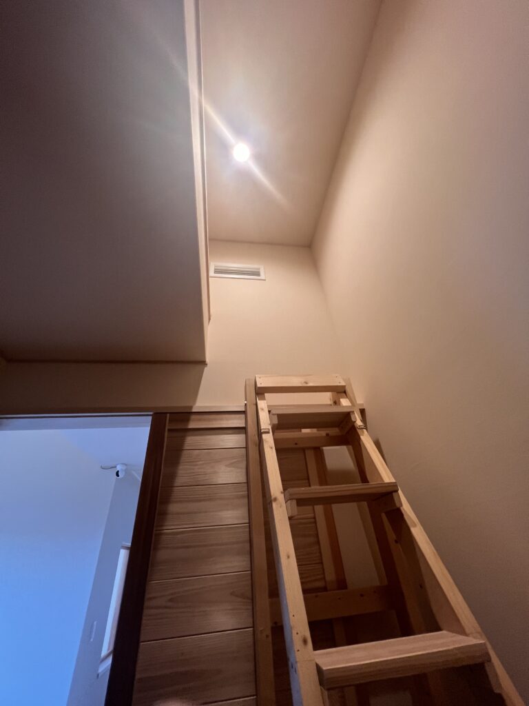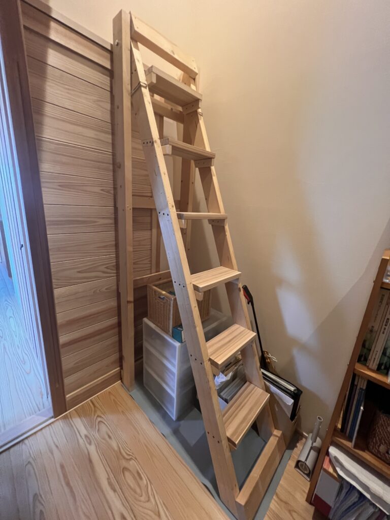 この上にロフト収納があり、大工さんにはしごを作ってもらう案もでたのですが、どうしても大きくなって場所も取ってしまうよね。
