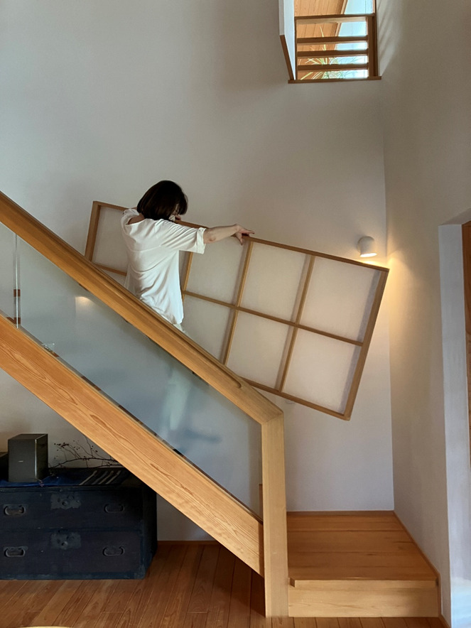 最後に夏用の簀戸を外して、キレイになった障子戸に交換です。