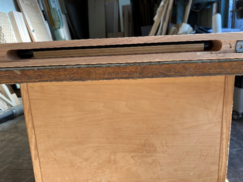 写真黄枠の部分がソフトクローズの部品にキャッチされるよう加工されています。