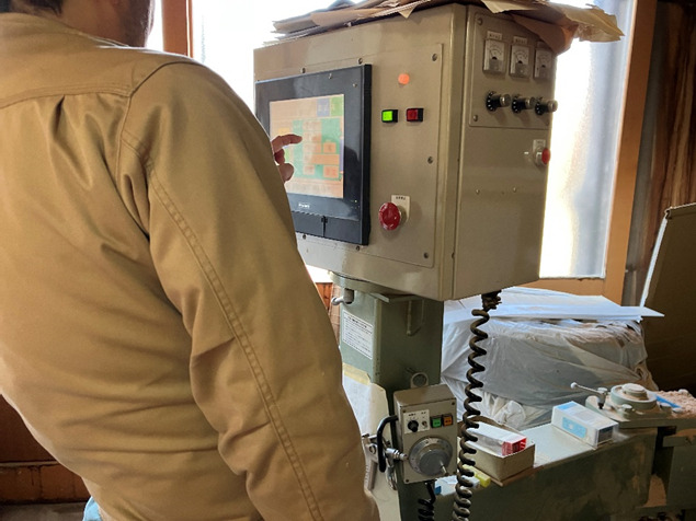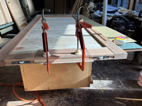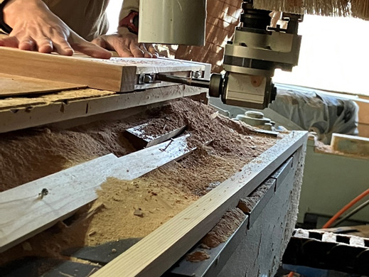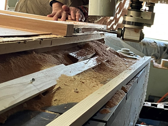 設定後、建具を加工機材の上にセット。