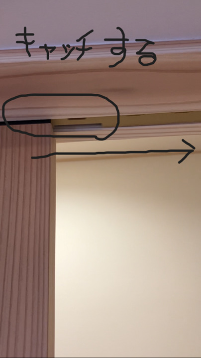 引っかかりに負けて、建具の下部が先にスライドして
