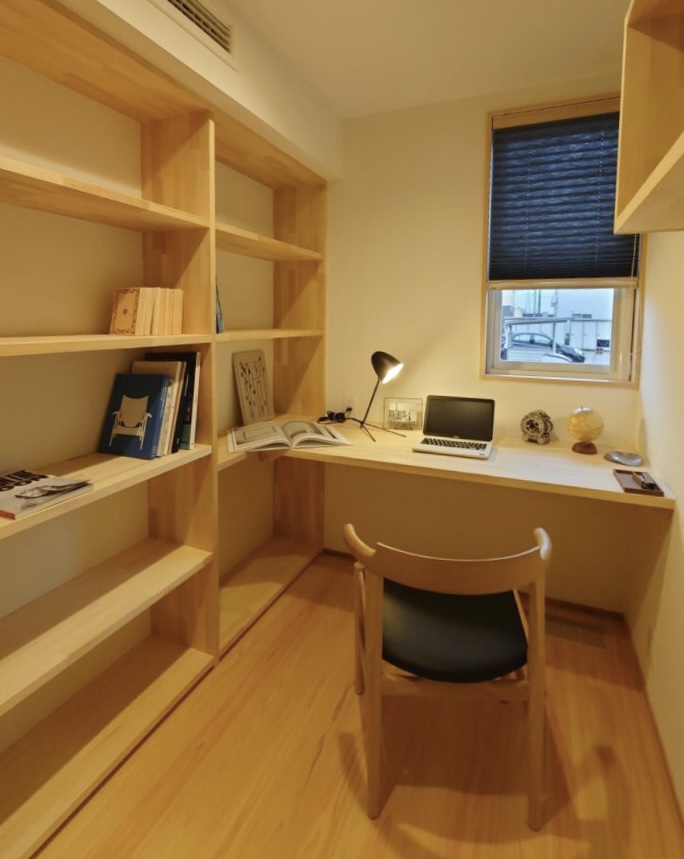 3畳の小さな和室には上品な床の間があり、奥はご主人様の書斎。