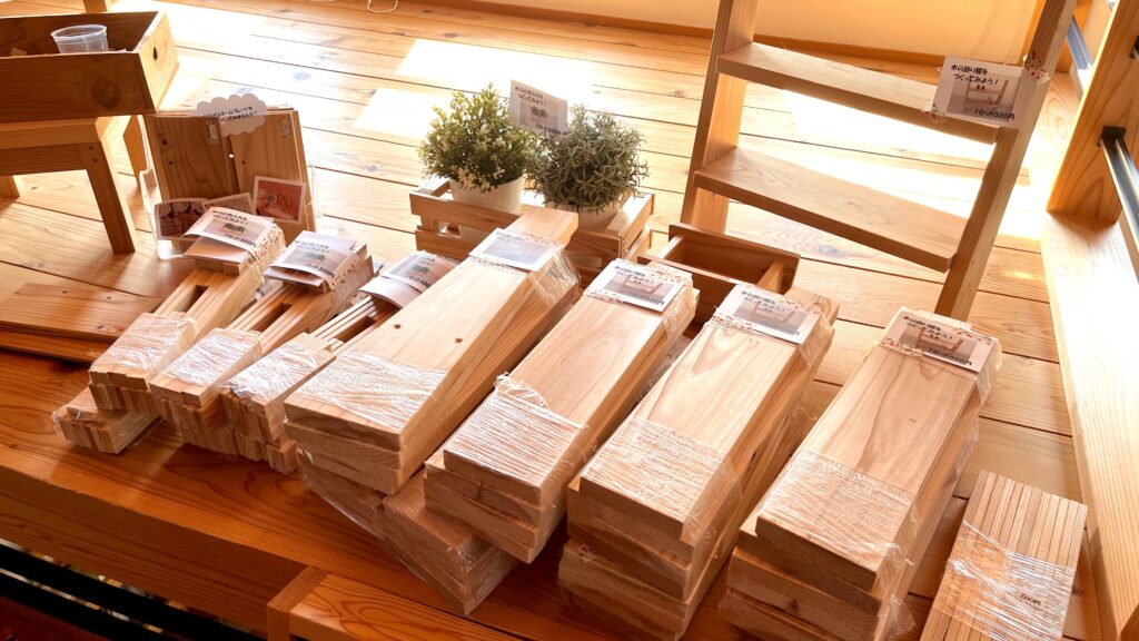 木の端材・工作キット・タイルはナレッジライフ展示場で販売しています