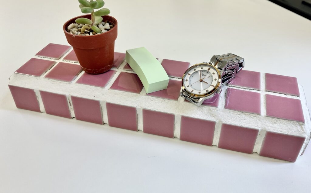 接着剤でタイルを貼っただけで、ちょっとした小物置きに!