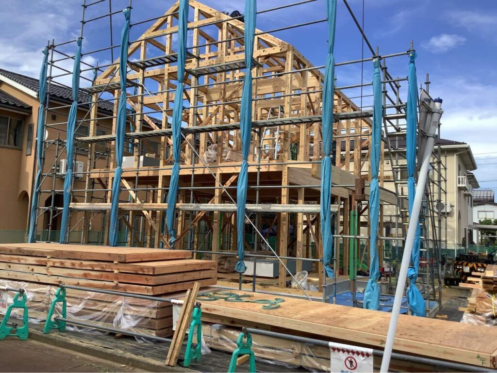7月末に着工し、8月末に無事上棟いたしました。