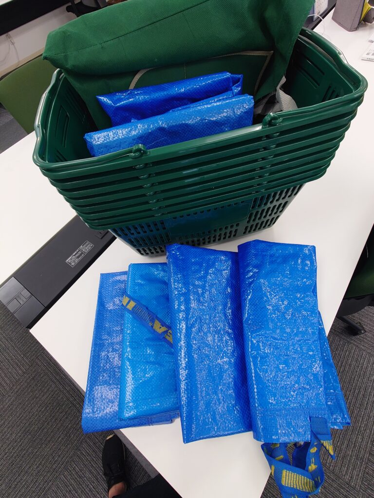 キッチン周りや細々したものは、カゴに直接入れてパパっと運び、新しい家の収納スペースに納めます。