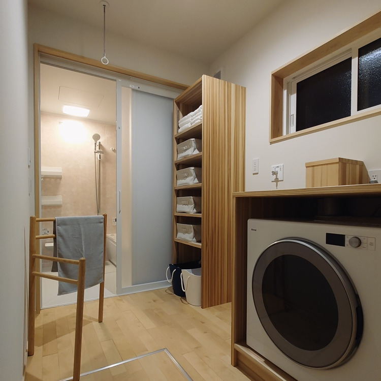 「帰ってきて、リビングを通らず直接洗面、脱衣に行ける間取りはいいですね!」
