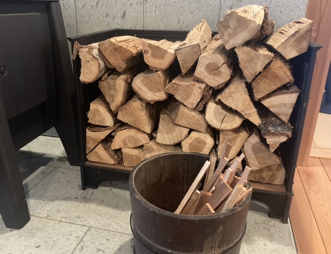 寒い日には事前に乾かしておいた薪や小さくカットした端材を使用して薪ストーブをつけていきます。