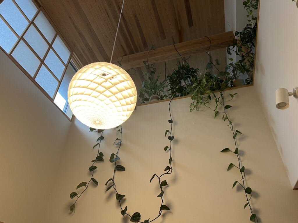 お天気が良い日ではなく、昼間でも薄暗い日だったのですが、自然素材のやさしい雰囲気と光を楽しむデザインの照明がぴったり◎