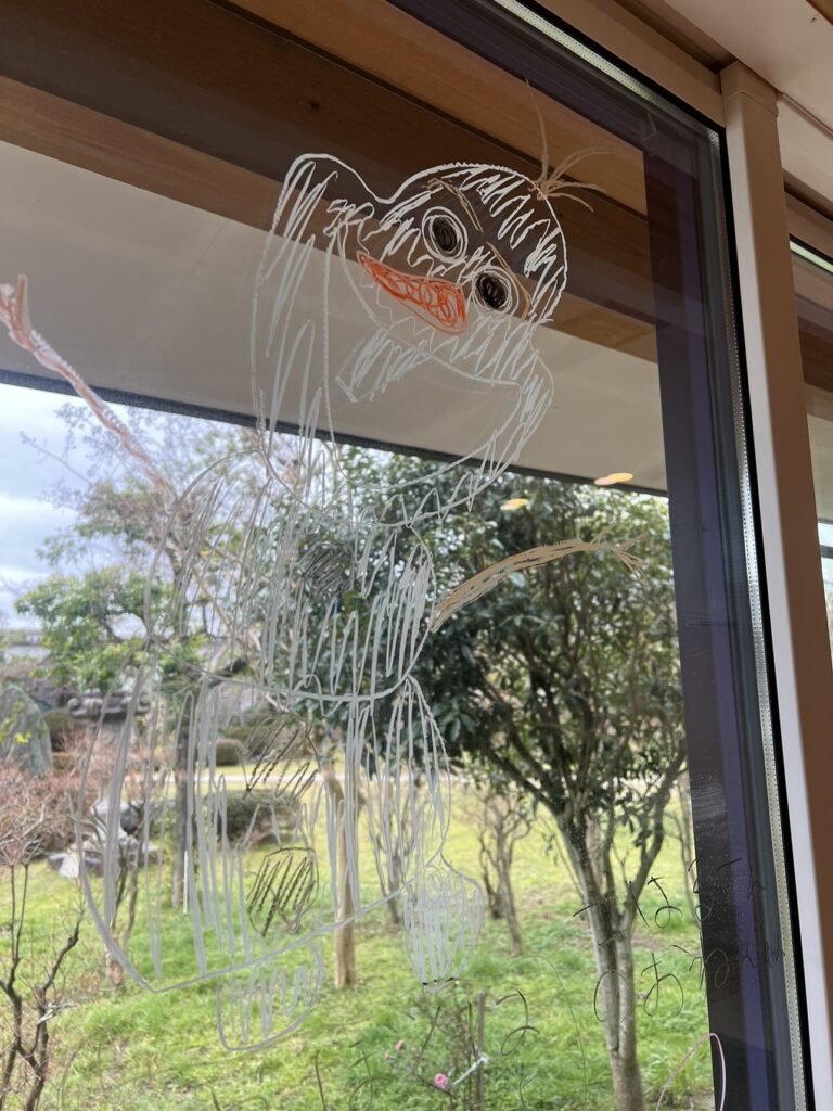 ガラスに描けるペンでお子さんたちがお友達とよく窓にお絵描きをするそうです◎