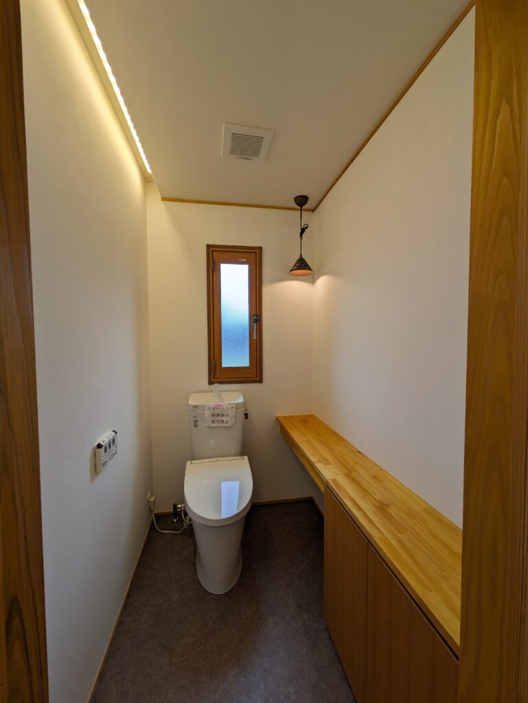 トイレは便器を再利用しつつ、配置を変えてご主人のリクエストの間接照明を。