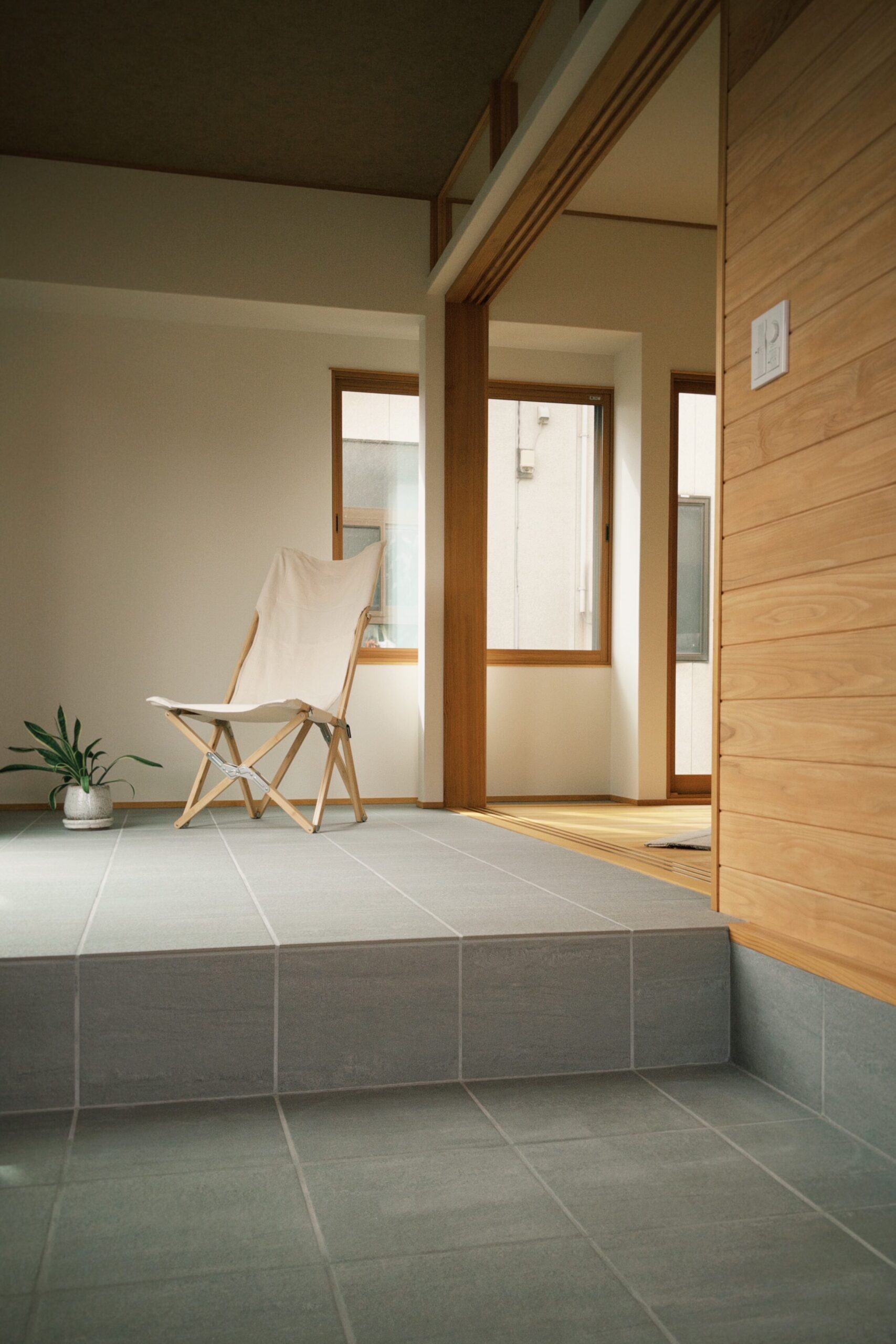 玄関は土間スペースをぐんと広げて、可変的な使い方ができるように。