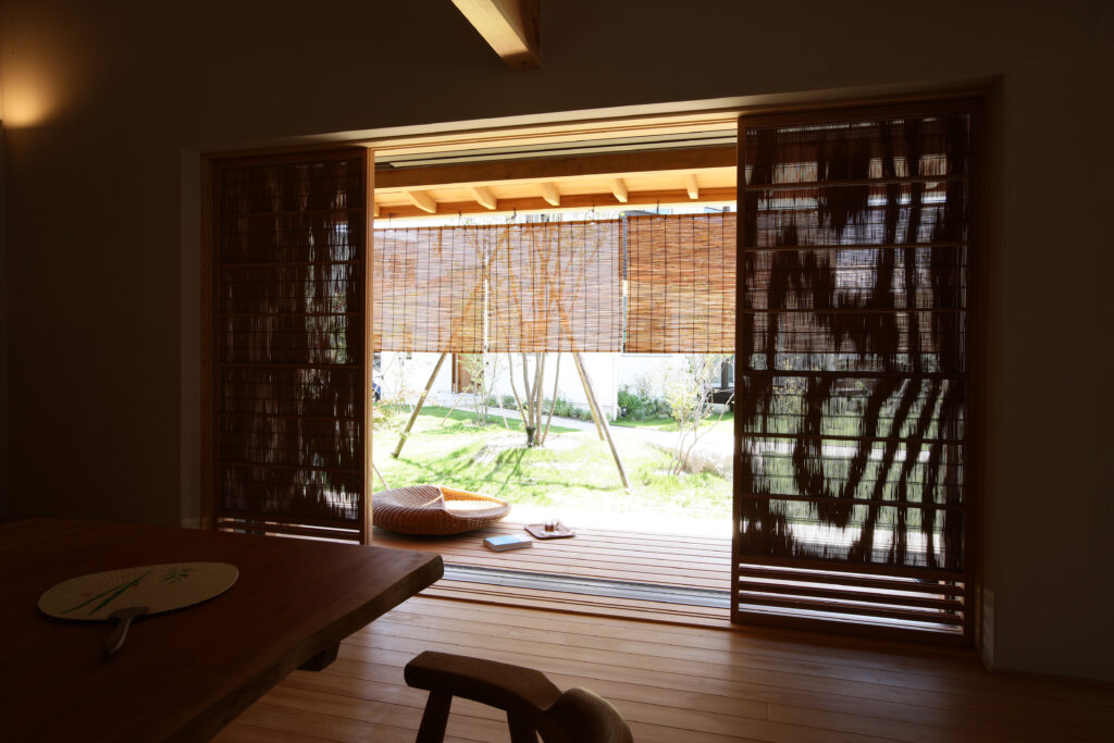真夏の昼間の様子です。軒先に簾を追加するとさらに効果アップ◎