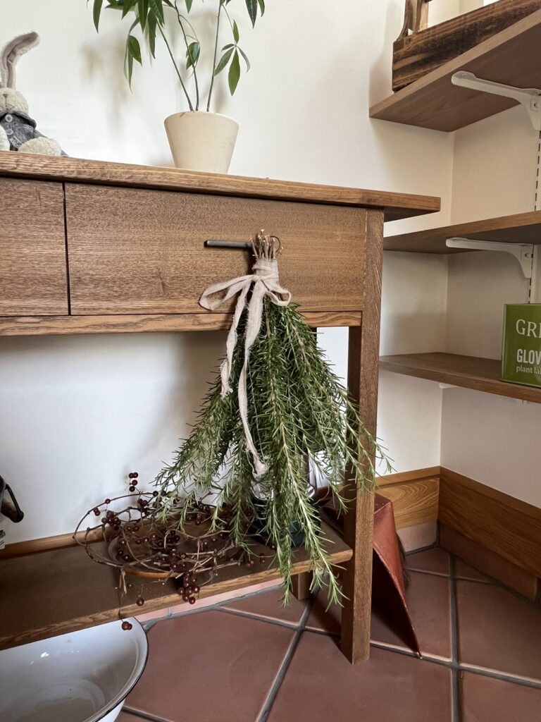 カットしたローズマリーがもったいないのでスワッグにしたい!ただ束ねるだけだけど意外とこれ時間がかかる!!