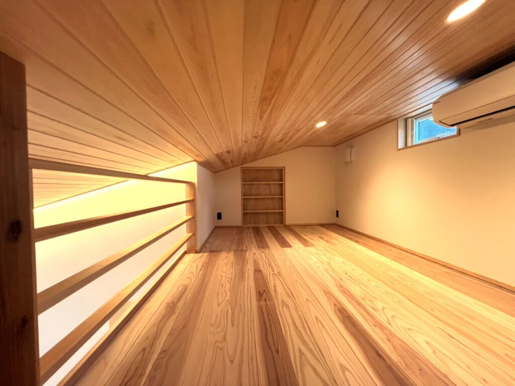 ロフトからつながる勾配天井から すーっと光がさしていい感じ◎