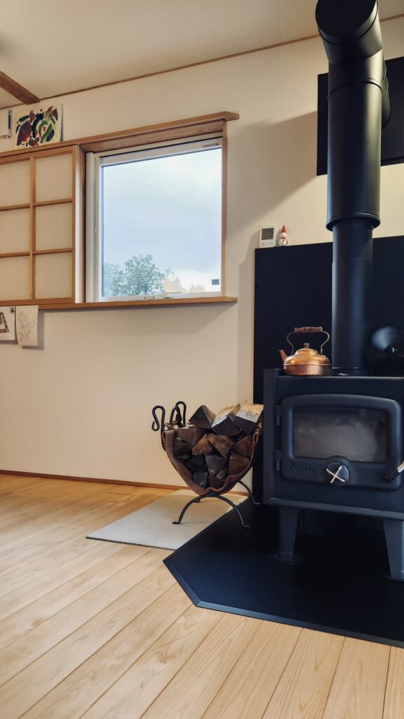 お部屋の中は薪ストーブでとても暖かく、火のぬくもりを感じられました。