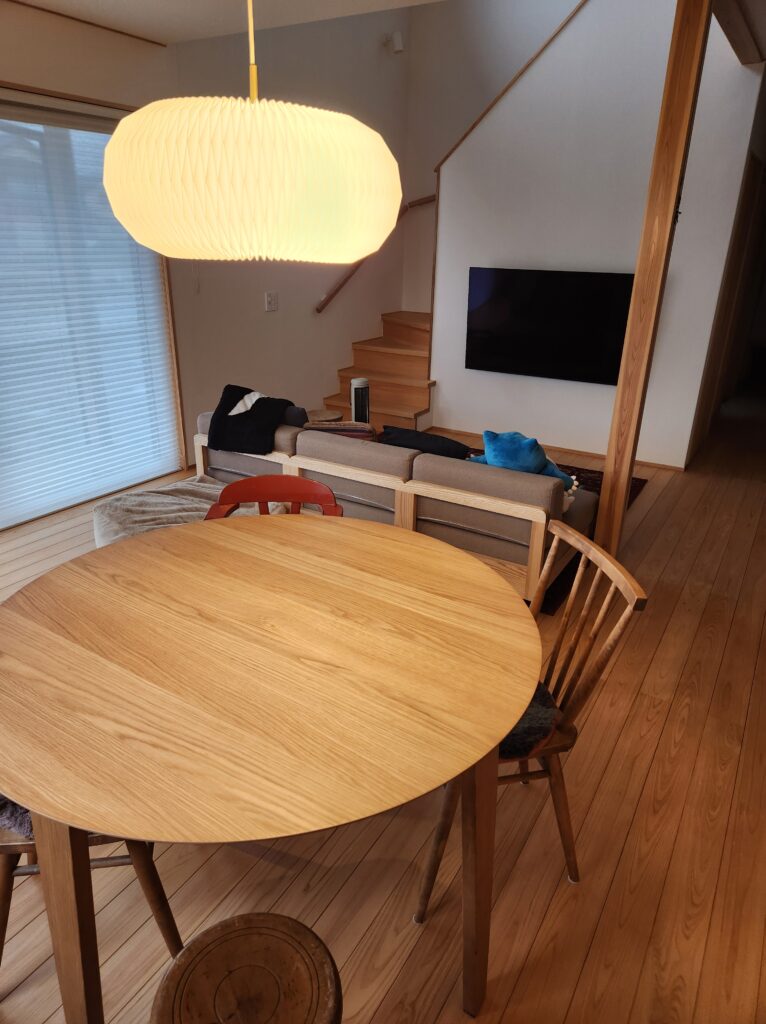 ペンダント照明とダイニングテーブルの色合いや形がマッチしていて素敵です。