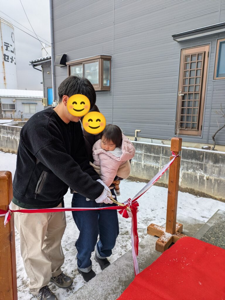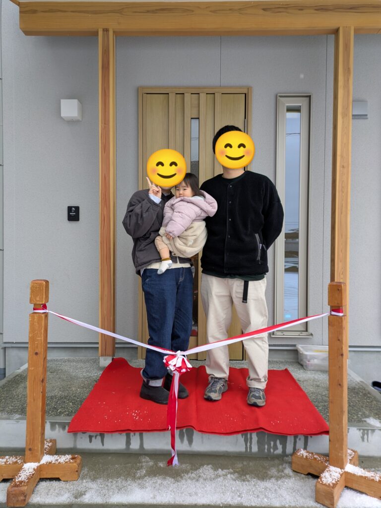 雪が降る中、、無事お客様に完成した住宅をお引渡しさせていただきました。