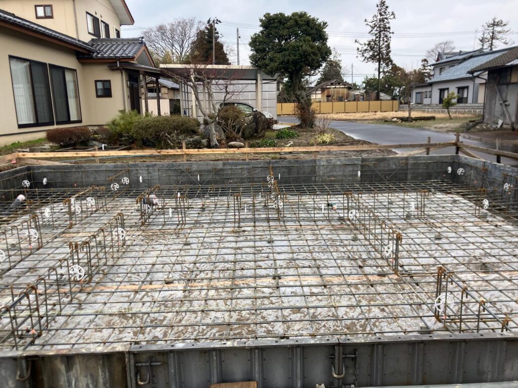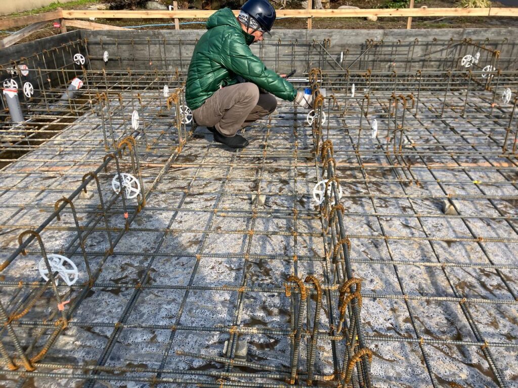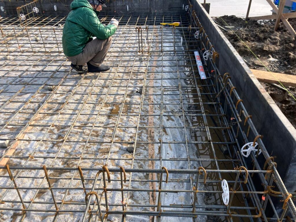 検査では鉄筋の配置や鉄筋のピッチ、コンクリートが流された時にかぶり厚が確保されているかなどを