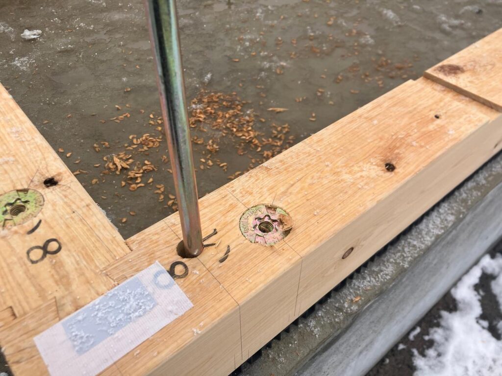 土台とアンカーボルトを通す穴は現場で大工さんがあけています。