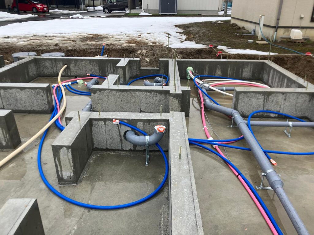 穴の底には浄化槽が沈まないようにコンクリートベースを打設しています。