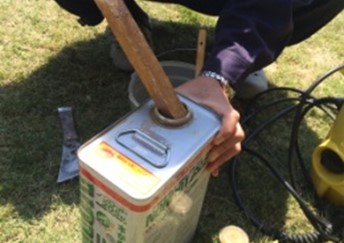 かき混ぜた缶からバケツ半分くらいにノンロットを入れましょう。