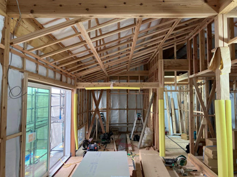 完成が見えてきた長岡市の平屋。建築現場でお施主様と配線・造作の確認をしてきました。