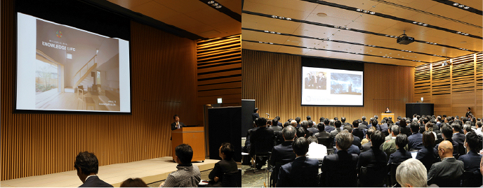ナレッジライフのコンセプト「人と街と地球にやさしい家」を形にしたモデルハウス、センター棟では、家具などの暮らしの提案、SDGsへの取組みをまとめたパネル展示やリサイクル木材などの取組みブースなどご見学頂きました。