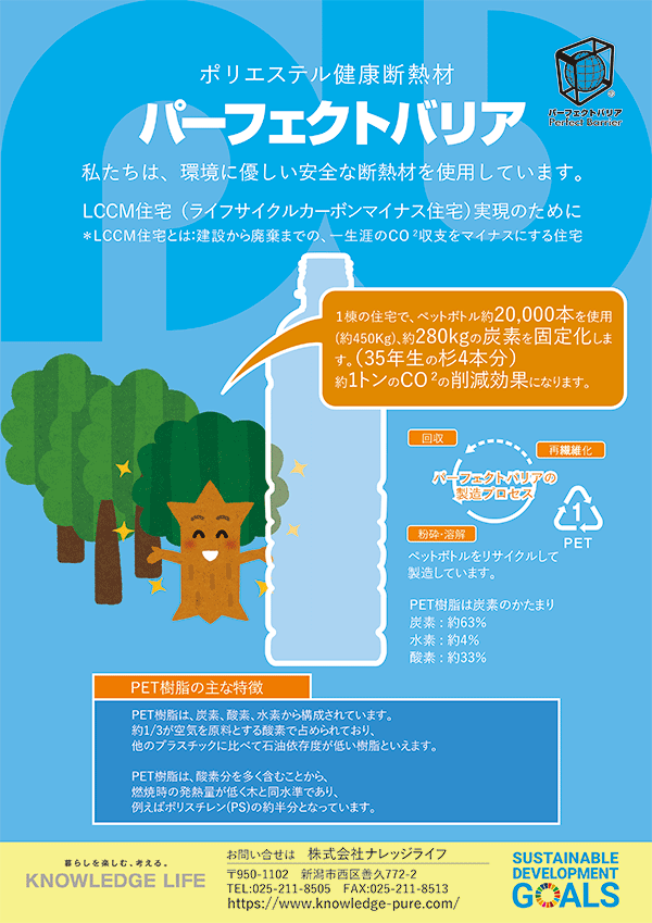 炭素固定にも適したPET樹脂を原材料としていること、その成分の解説やペットボトルをリサイクルし製造されていること、1棟当たりのリサイクル使用量・炭素固定量・CO2削減量を数値化する、など環境保全に貢献できることを分かりやすく周知するPRツールを作成して発信しています。