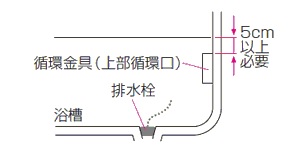 浴槽内の水(お湯)を追い炊き口より少し上まで溜めておいて下さい。