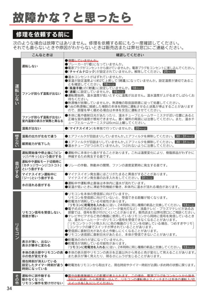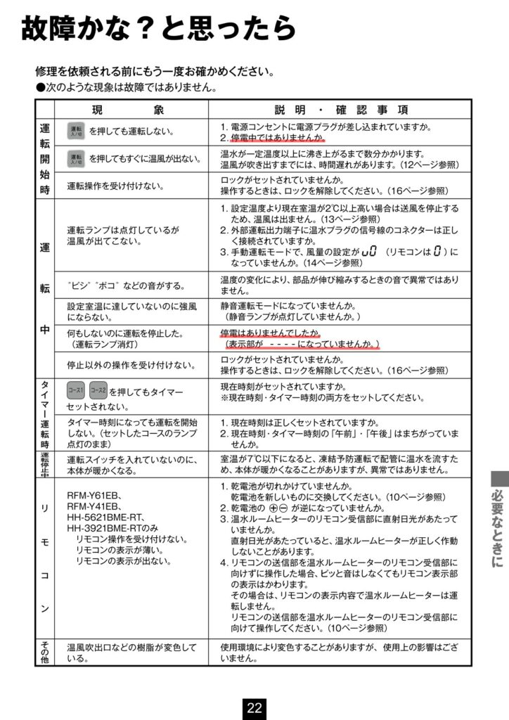 - 故障かなと思ったら【ルームヒーター編】