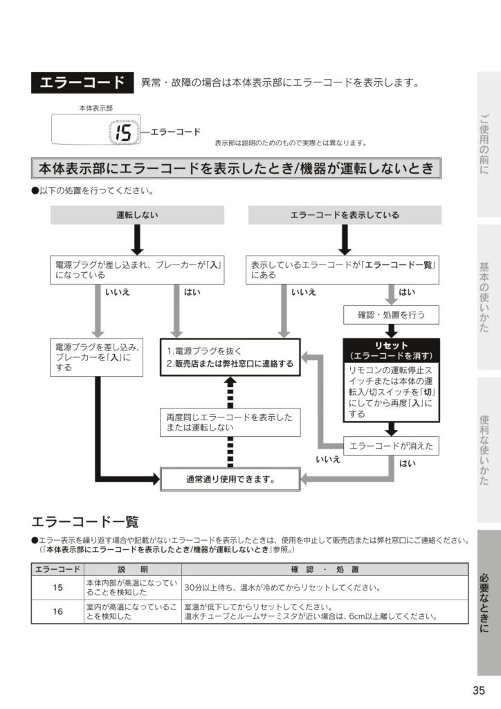 ルームヒーターが故障かな?と思った時の対処方法です。