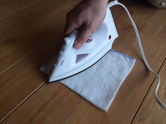 ②その上からスチームアイロンをかけます