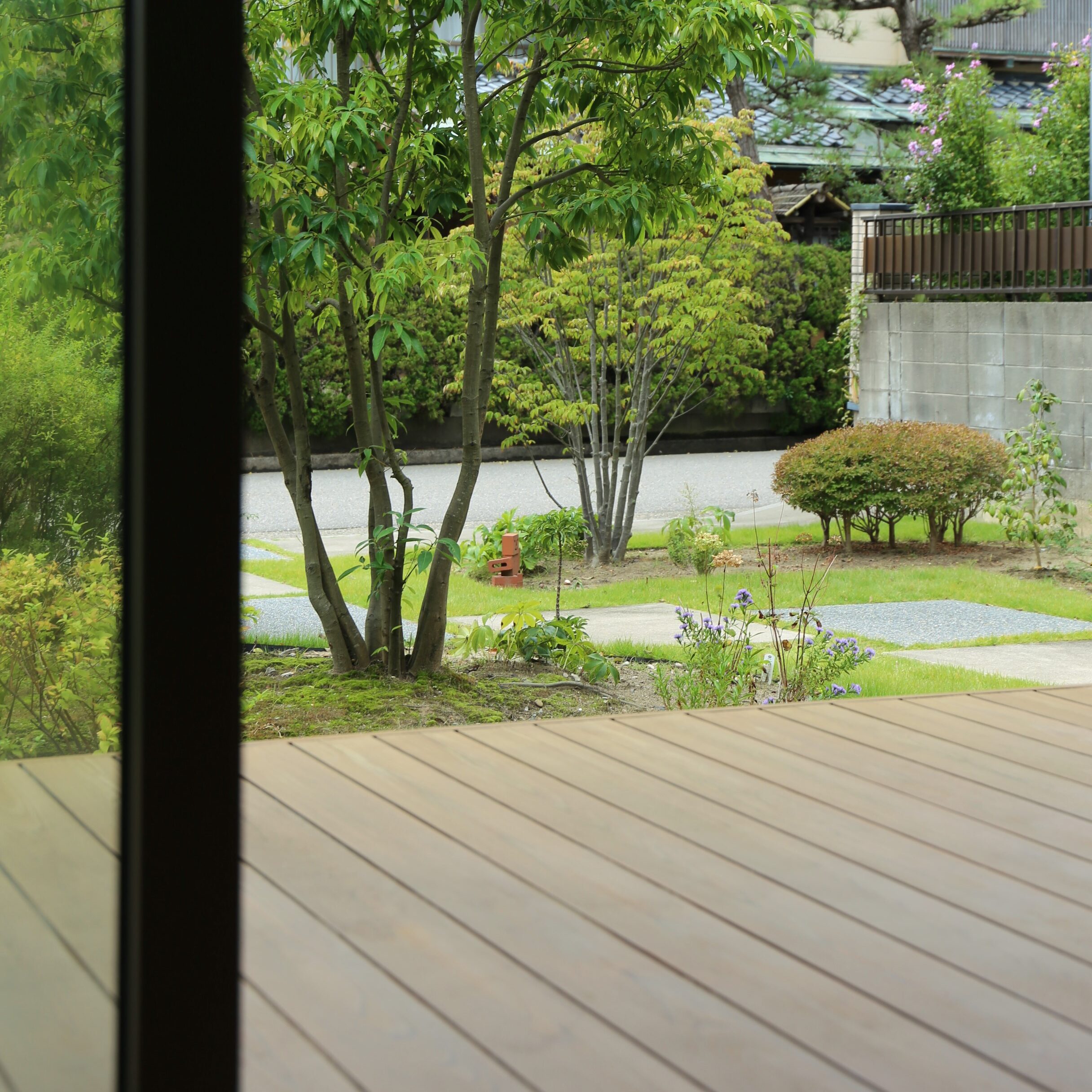 リビングから庭に繋がるのびやかな縁側デッキ