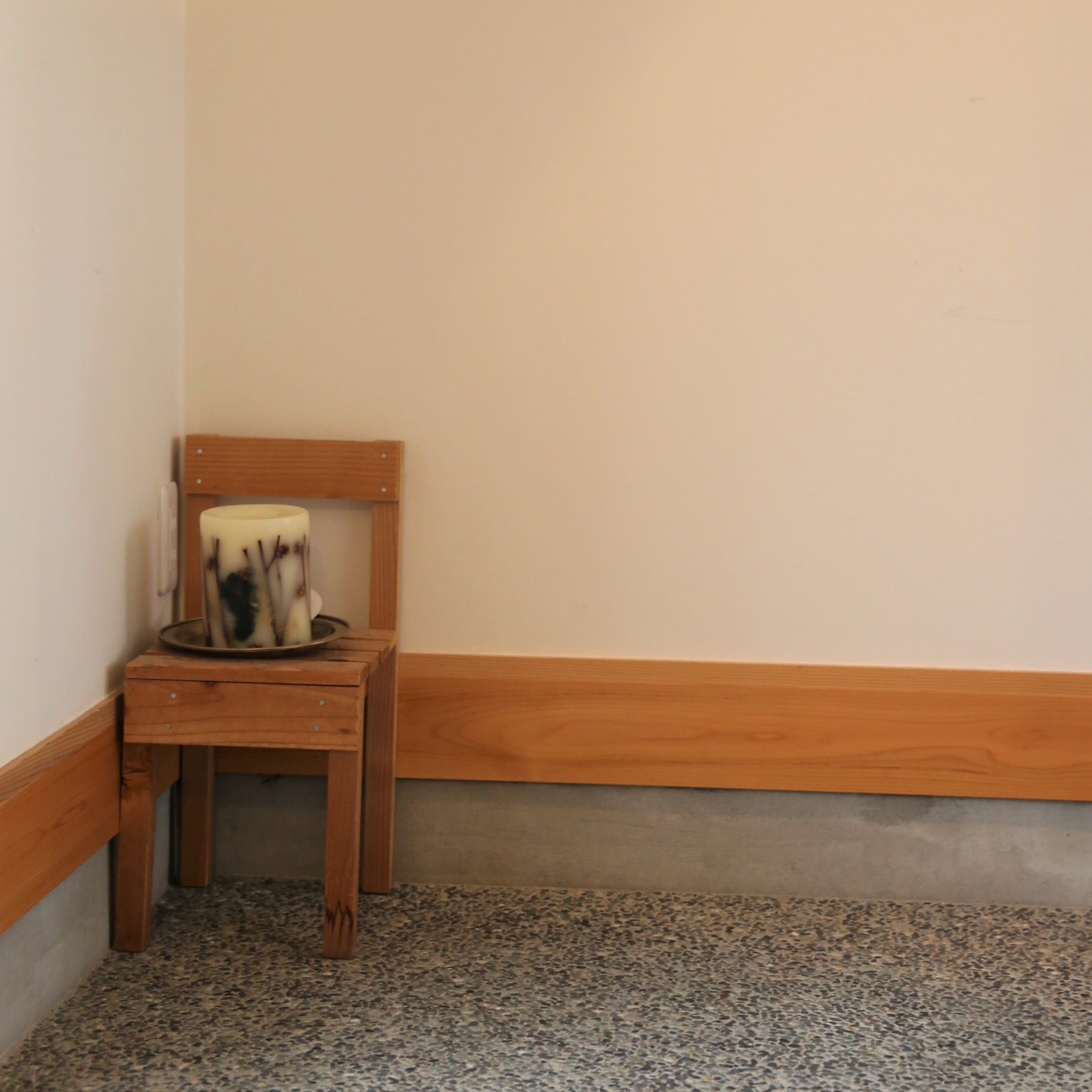 ナレッジライフのイベントでつくった木の椅子がちょこんと
