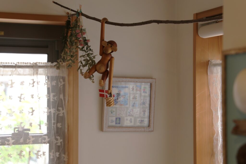 木の枝を渡す遊び心で可愛らしい空間に