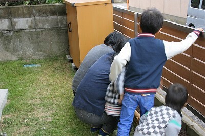 お家の外回りをぐるっとチェックして、フェンスのお手入れについて相談中。