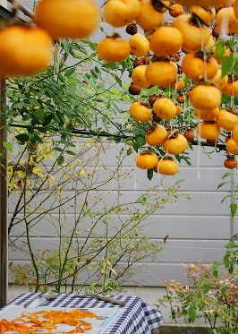 この時期は柿の季節だったので、デッキには干し柿が沢山でした。