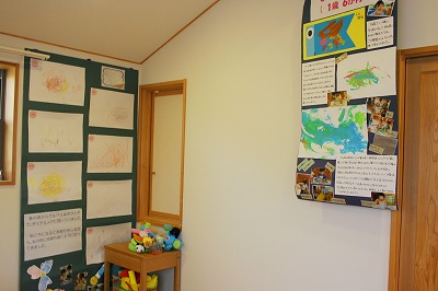 息子さんの絵がたくさん飾られたこのお部屋。