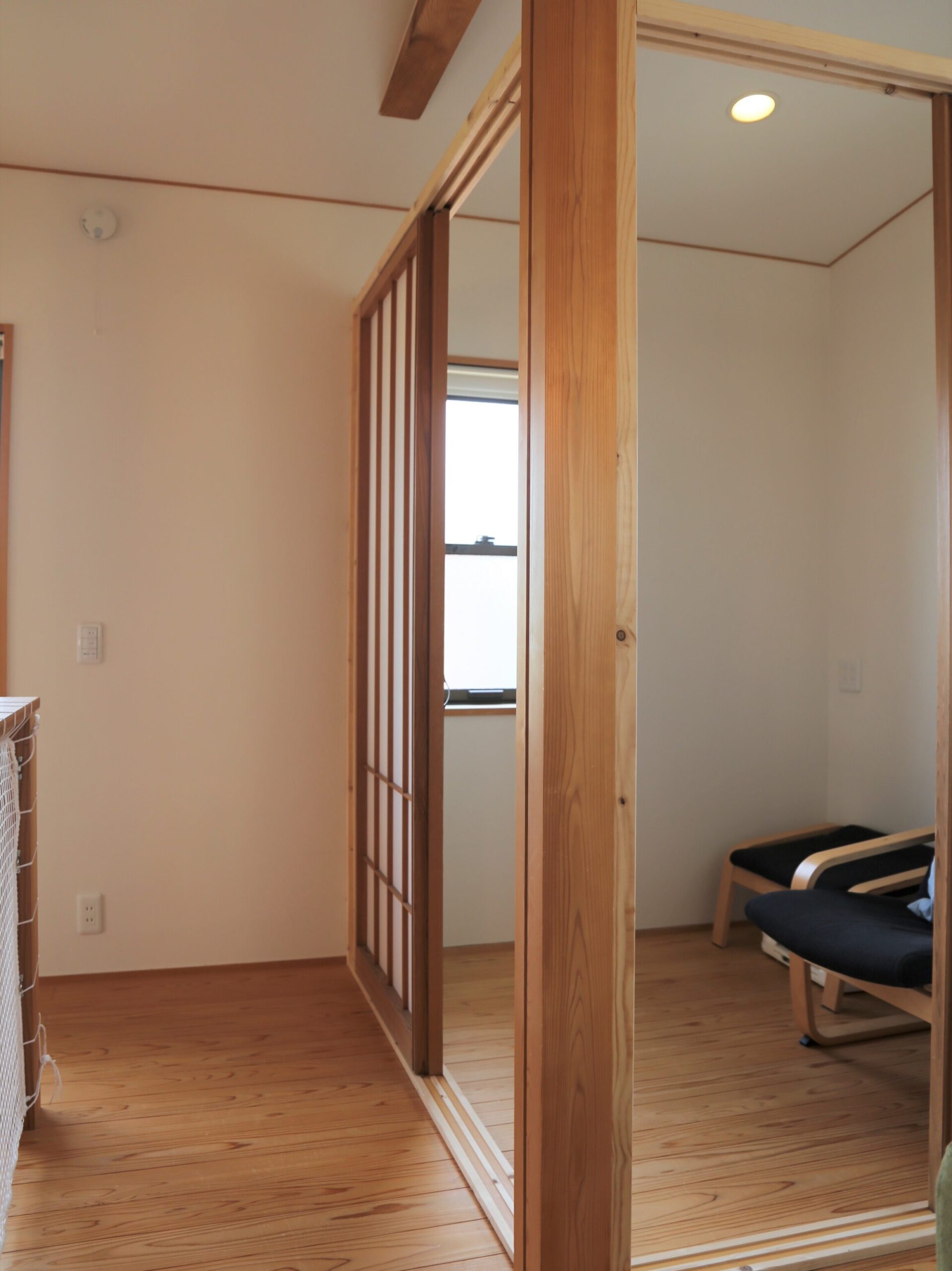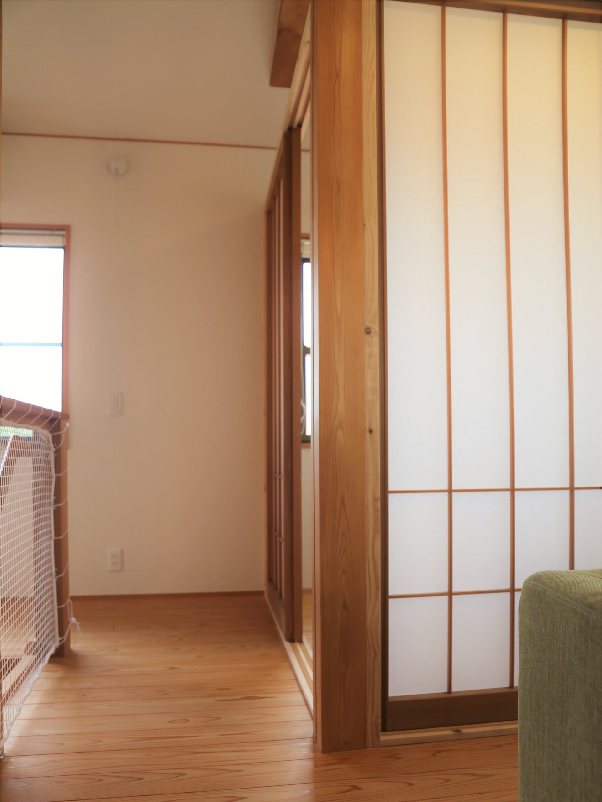 リビングからの景色をもっと堪能したいと思って、窓の建具を障子戸からロールスクリーンに変えたのですが、その障子戸を仕切りに使って2階に一部屋作っちゃいました!こんなことやりたいというアイディアが沢山浮かんできて、それを自分の手で実現できるのはやっぱり木の家だからなのかなと思います。