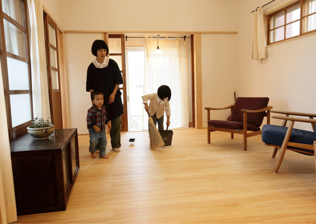 庭とリビングがつながる 子育て世代の穏やかな木の家