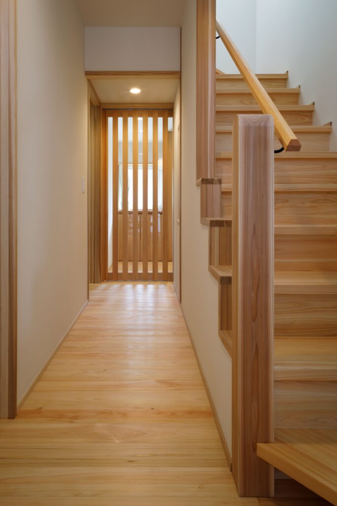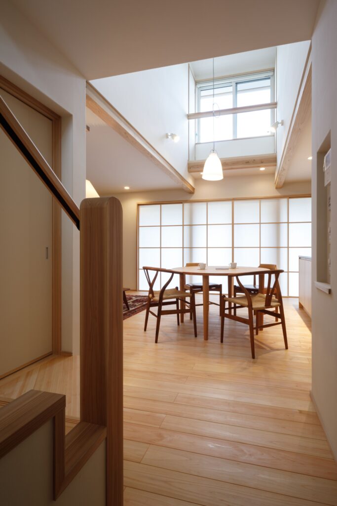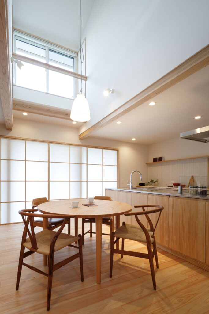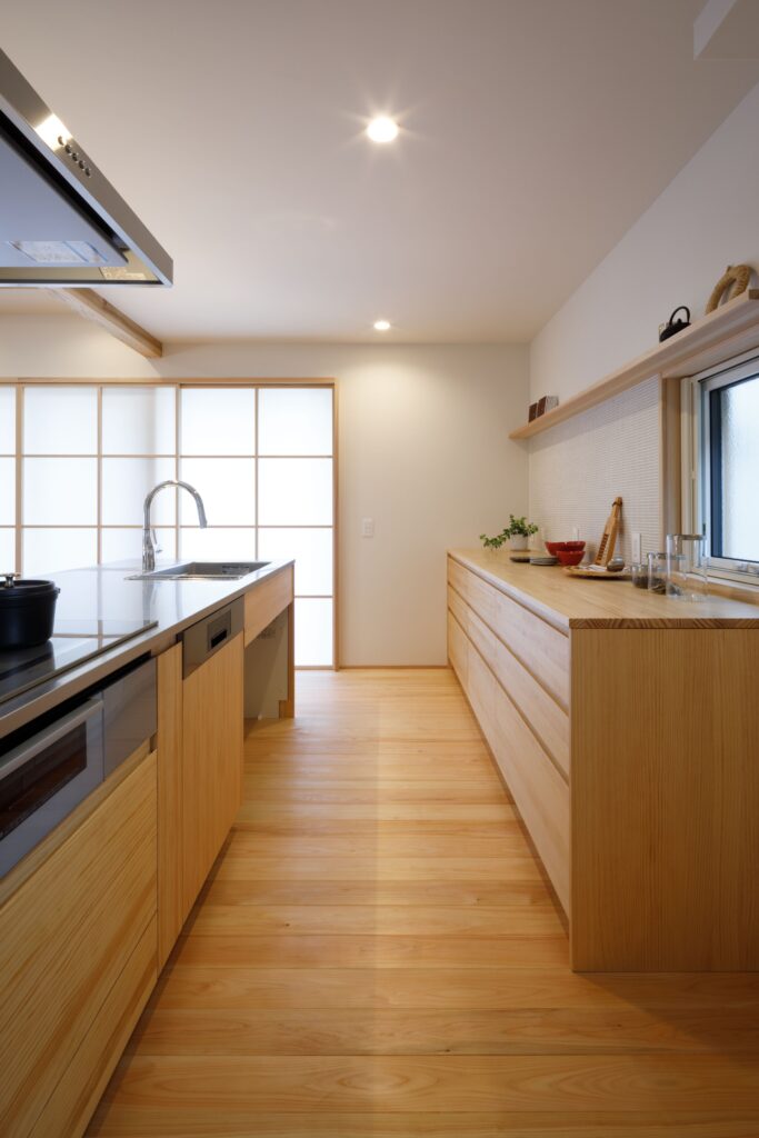 デザインはとことんシンプルに。無垢の木や珪藻土塗り壁、障子など素材の美しさが引き立つ木の家になりました。