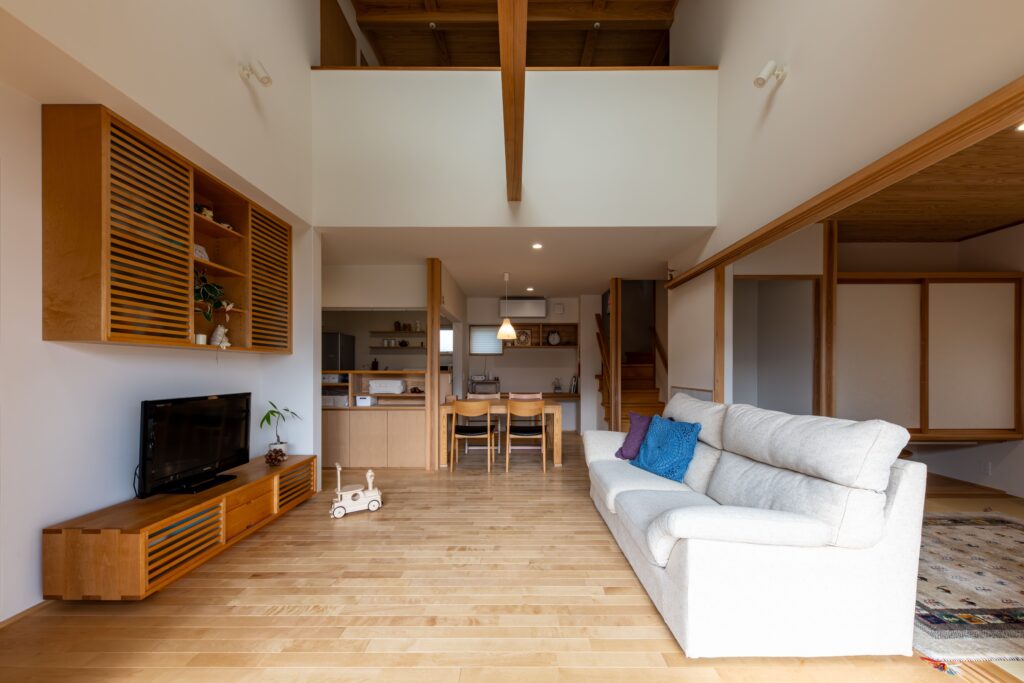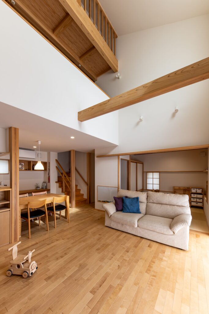 個々の居場所や、毎日が豊かになるちょっとした工夫・デザインが散りばめられた、子育て世代が暮らしやすい木の家になりました。