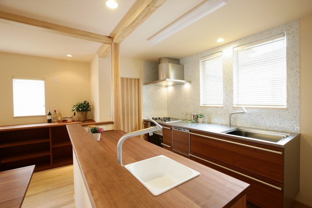 使い勝手がよく、家族のコミュニケーションが生まれる配置のダイニングキッチン。