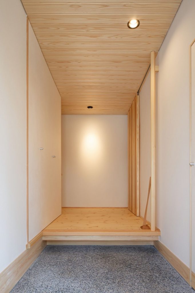 木のあたたかみ、癒しの香りを存分に感じられる玄関。住み手も、家を訪れる人も優しい気持ちになれるような空間です。