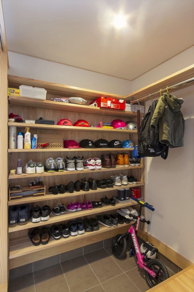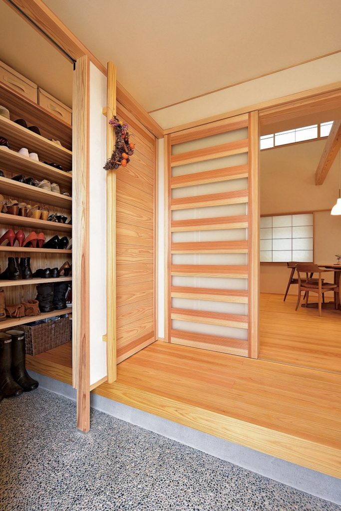 シュークロークは吊り戸や暖簾で目隠しすることで、いつでもきれいな玄関を実現します。