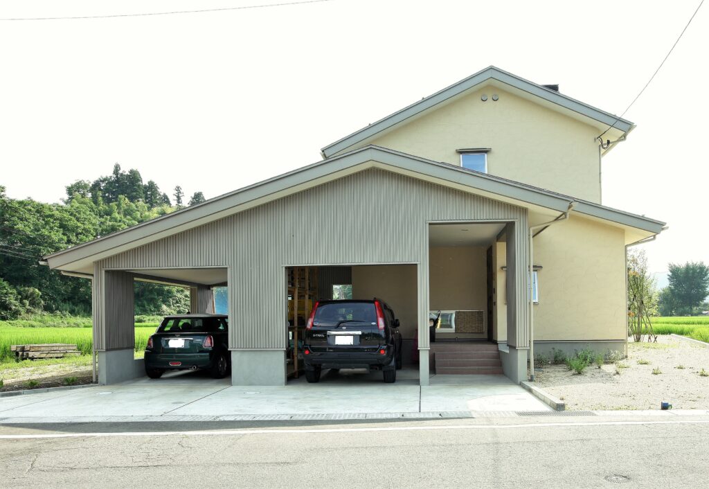 建築地は雪の多い地域。車を止めてから玄関への動線も考慮してビルトインガレージに。